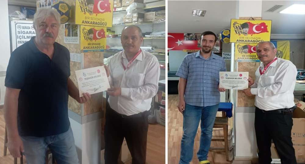 Son olarak, Buş Buş kırtasiyenin sahibi Vural Koçer ile teknik destek sunan Ahmet Yurtlu’ya plaket takdiminde bulundu.