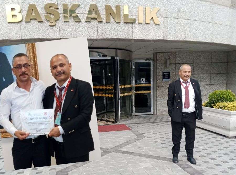 Ziyaret sonunda Ali Daştan, Engelli Hakları Federasyonu adına Aziz Murat Seyrek’e Teşekkür belgesi takdim etti.