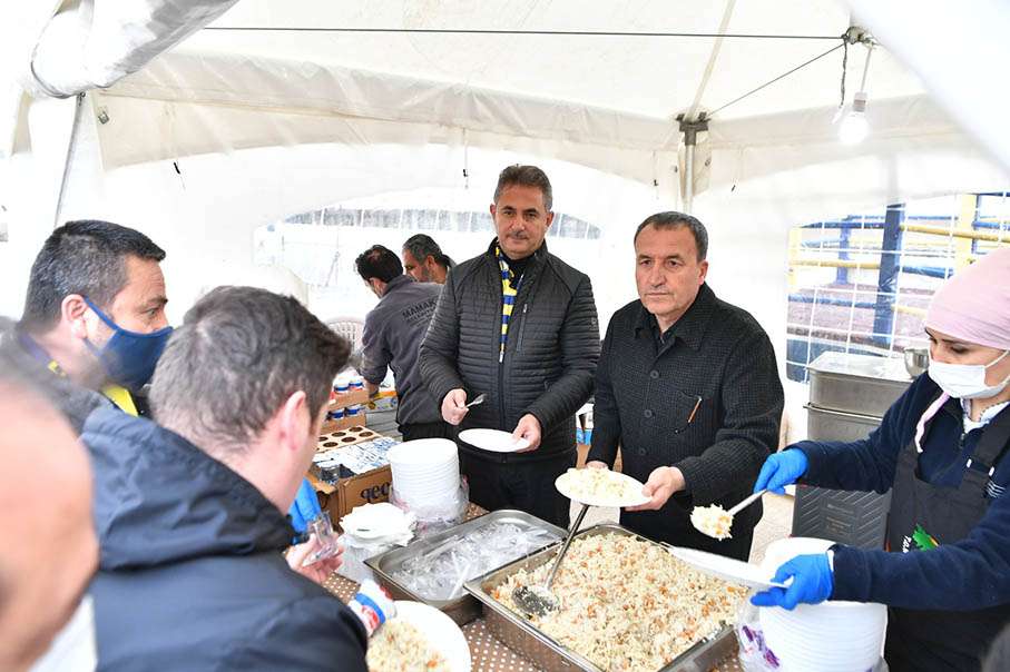 Mamak belediye Başkanı Murat Köse de “Mübarek Ramazan ayında iftarlarımızla tüm halkımızın yanındayız. Bugün Ankaragücü taraftarının da Ramazan ayına gelen maç öncesi iftarlık konusunda sıkıntı yaşamaması için yine çadırlarımızı kurduk, onlara nohut pilav ikramında bulunduk. Ayrıca aile merkezleri önünden kaldırdığımız servislerimizle de yine taraftarı yalnız bırakmadık. Her zaman Ankara’nın köklü spor kulübü Anakaragücü’nün yanındayız” diye konuştu.