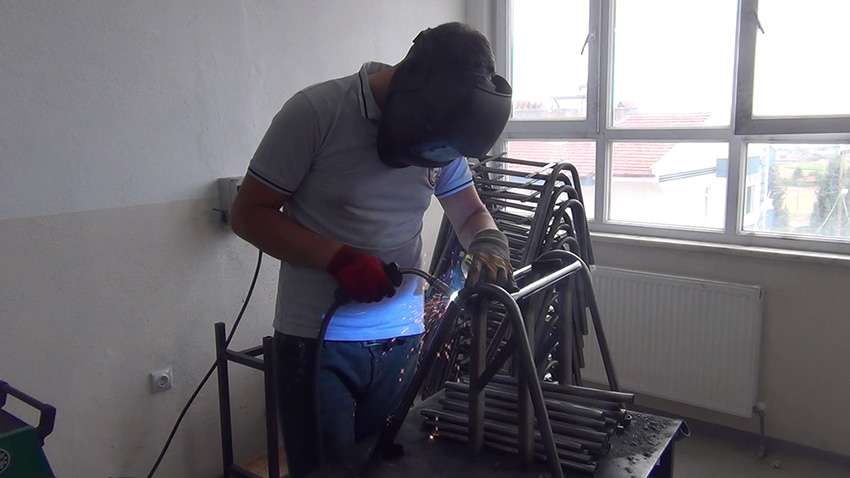 "Üretimle beraber eğitiminde gelişmesi için canla başla çalışıyoruz. Okul olarak üretime 3 yıl öncesi 250 öğrenci sırası yapımıyla başladık. Bu gün yılda metal teknolojileri alanında 15 bin takım öğrenci sırası yapıyoruz. İlçede genel anlamda olmayan makine parkı okulumuzda var. Elektrotif boya makinamız, bükme makinamız da mevcut. "