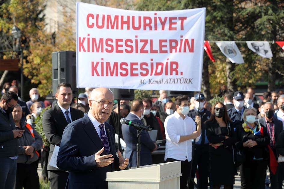 Şener Çakmak Okulları öğrencilerinin halk oyunları gösterisi ile başlayan törende; Yenimahalle Belediye Başkanı Fethi Yaşar’ın yanı sıra CHP Ankara Milletvekili Levent Gök, CHP Yenimahalle ilçe Başkanı Ferudun Güngör, İYİ Parti, Memleket Partisi, Gelecek Partisi, DEVA Partisi, Vatan Partisi yetkilileri, Yenimahalle Kent Konseyi, DİSK Genel-İş, Cumhuriyet Kadınları Derneği temsilcileri, Emekli Öğretmenler Derneği ve Atatürkçü Düşünce Derneği yetkilileri Murat Karayalçın Meydanı’nda bulunan Atatürk anıtına çelenk bıraktı.