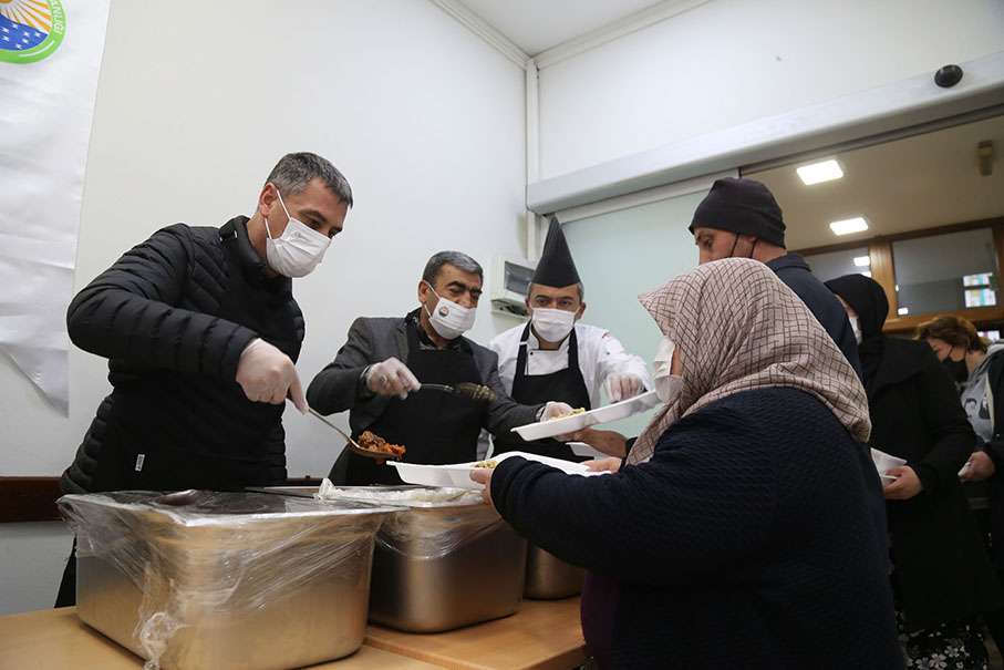 Gölbaşı Belediye Başkanı Ramazan Şimşek, kazanların başına geçerek vatandaşlara iftar yemeği dağıttı.