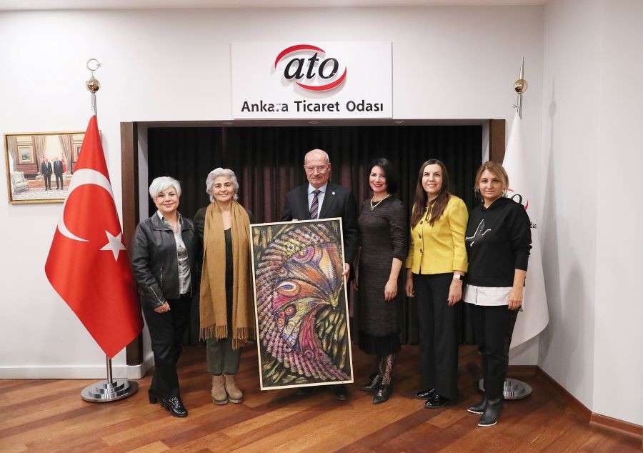 Programın gerçekleştiği salonda sohbet ettiğimiz Tohumluk Vakfı Başkanı Pınar Ayhan, Vakıf Yönetim Kurulu Üyesi Meral Uzman, Vakıf Kültür Sanat Komitesi Başkanı Semra Sancak ile Başkent Üniversitesi Öğretim Üyesi Prof. Dr. Zeliha Eser ve Resim Sanatçısı Mine Alkan, ATO Başkanı Gürsel Baran’ı makamında ziyaret ederek bir tablo hediye etti.