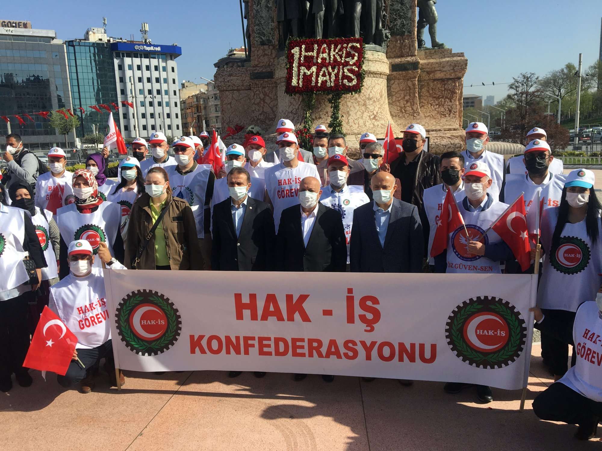 HAK-İŞ Konfederasyonu, 1 Mayıs’ı Taksim’de kutladı. Düzenlenen törende 1 Mayıslarda ve iş kazalarında hayatını kaybeden emekçilere için dua edildi. Çalışanların haklarıyla ilgili taleplerin de dile getirildiği kutlamalar sırasında sağlık ve sosyal hizmet emekçileri de ziyaret edildi.