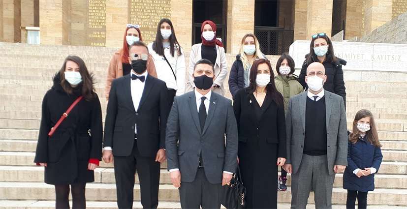 Dernek Başkanı Avukat Onur Kıraç, beraberindeki heyetle birlikte yaptığı ziyarette Atatürk’ün mozolesine kırmızı-beyaz karanfillerden oluşan bir çeleng bıraktı. Saygı duruşu ve İstiklal Marşı’nın okunmasından sonra Atatürk Özel Defteri’ni imzalayan Kıraç, şu satırları yazdı:
