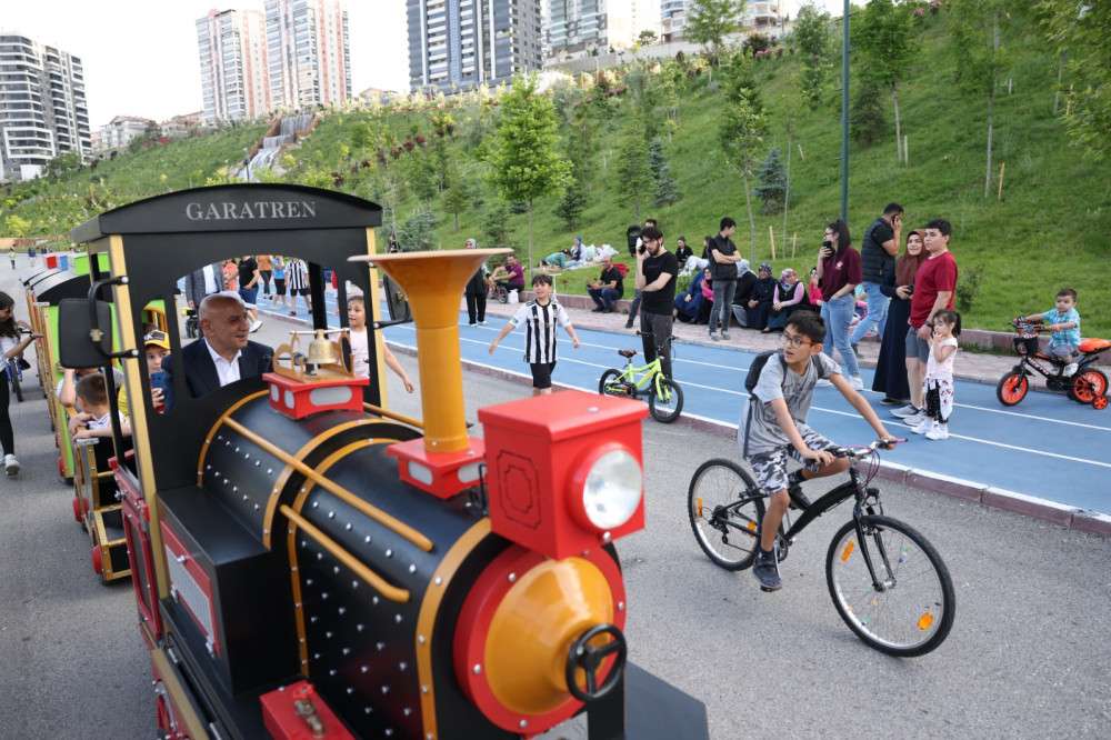 Keçiören Belediye Başkanı Turgut Altınok çocukların tren keyfine eşlik etti... Trenin vatman koltuğuna gecen Başkan Altınok devasa parkta çocuklara tur attırarak onların sevinç ve heyecanlarını paylaştı. Miniklerin yoğun ilgisiyle karşılasan Altınok, tren turunun ardından onlarla tek tek hatıra fotoğrafı da çektirdi.