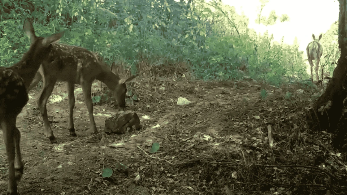 Genellikle yavrularıyla birlikte küçük gruplar halinde yaşayan, sakin adımlarla ilerleyip, ormana doğru giderek gözden kaybolan dişi kızılgeyik ile iki yavrusu, DKMP 2'nci Bölge Müdürlüğü'nün sosyal medya hesabından, "Annelerinin izinde emin adımlarla" sözleriyle paylaşıldı.