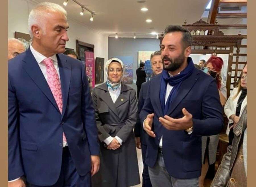 Kültür Ve Turizm Bakanı Ersoy, Emin Antik Sanat Merkezi’ndeki 19. Şefik Bursalı Resim Yarışma Sergisini gezerken, Sanat Merkezinin sahibi genç girişimci Emin Can Terzioğlu da kendisine eşlik etti.