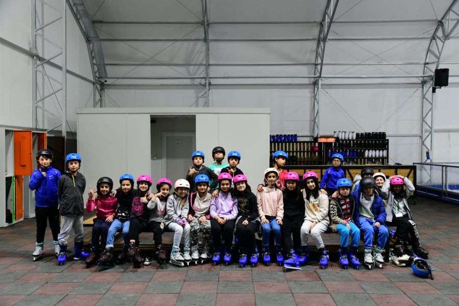 Buz üstüne çıkmadan çocuklara eğitim veriliyor. Denge sağlama, kayma konusunda ön bilgilendirme alan minikler, kendilerine ücretsiz sağlanan buz patenlerini giyerek soluğu pistte alıyor.