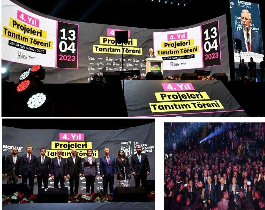 Atatürk Spor Salonu’nda düzenlenen 4. Yıl Projeleri Tanıtım Töreni’ne; Millet İttifakı Cumhurbaşkanı Adayı ve CHP Genel Başkanı Kemal Kılıçdaroğlu, İYİ Parti Genel Başkanı Meral Akşener, Saadet Partisi Genel Başkanı Temel Karamollaoğlu ile çok sayıda siyasi parti temsilcisi, milletvekilleri, belediye başkanları, ABB bürokratları ve Başkentliler katıldı.