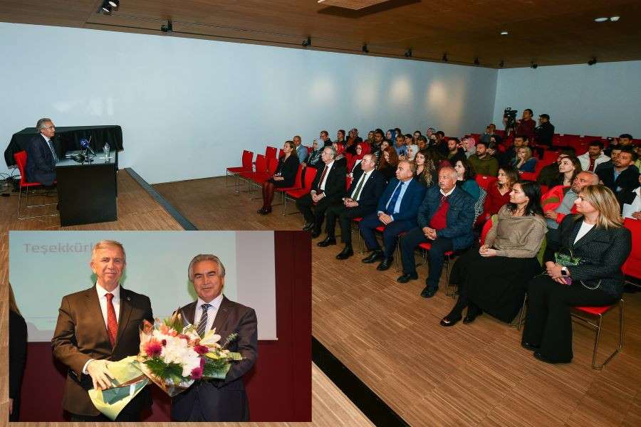 Programın sonunda Başkan Mansur Yavaş, programa katılarak sunum yapan UNESCO Türkiye Milli Komisyonu Başkanı Prof. Dr. Öcal Oğuz’a plaket ve çiçek verdi.
