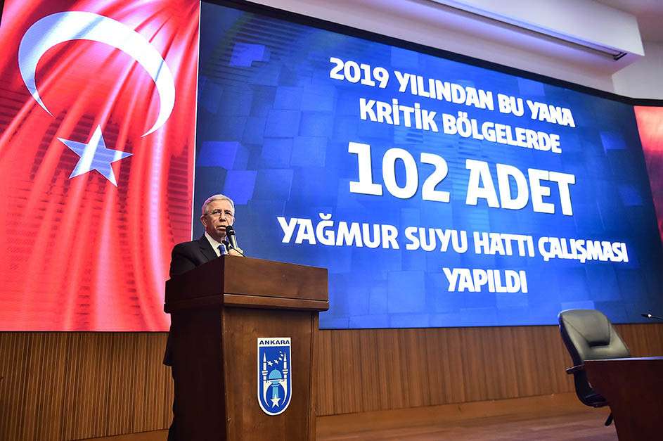 Küresel iklim değişikliği, imar planı değişiklikleri ve çarpık kentleşme, dere ve akarsu yataklarının imara açılması, yol ağının altyapı, kent içinde yeşil alanların da doğal bitki örtüsü ve ekolojik altyapı ile desteklenmeden yapılması nedeniyle son yıllarda sel felaketlerinin arttığını ifade eden ABB Başkanı Mansur Yavaş, 25 yıldır ihmal edilen ve acil olarak çözülmesi gereken projeleri de tek tek açıkladı.