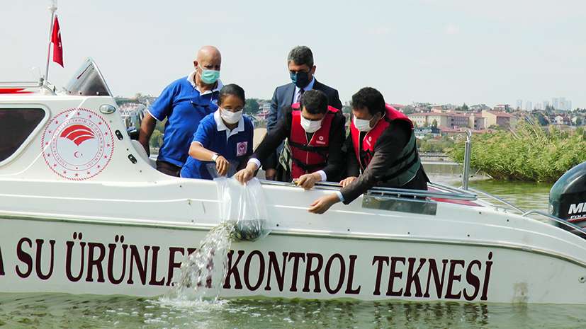 Ankara Valiliği ve Tarım ve Orman İl Müdürlüğü tarafından Gölbaşı ilçesindeki Mogan Gölü'ne 100 bin sazan yavrusu bırakıldı.