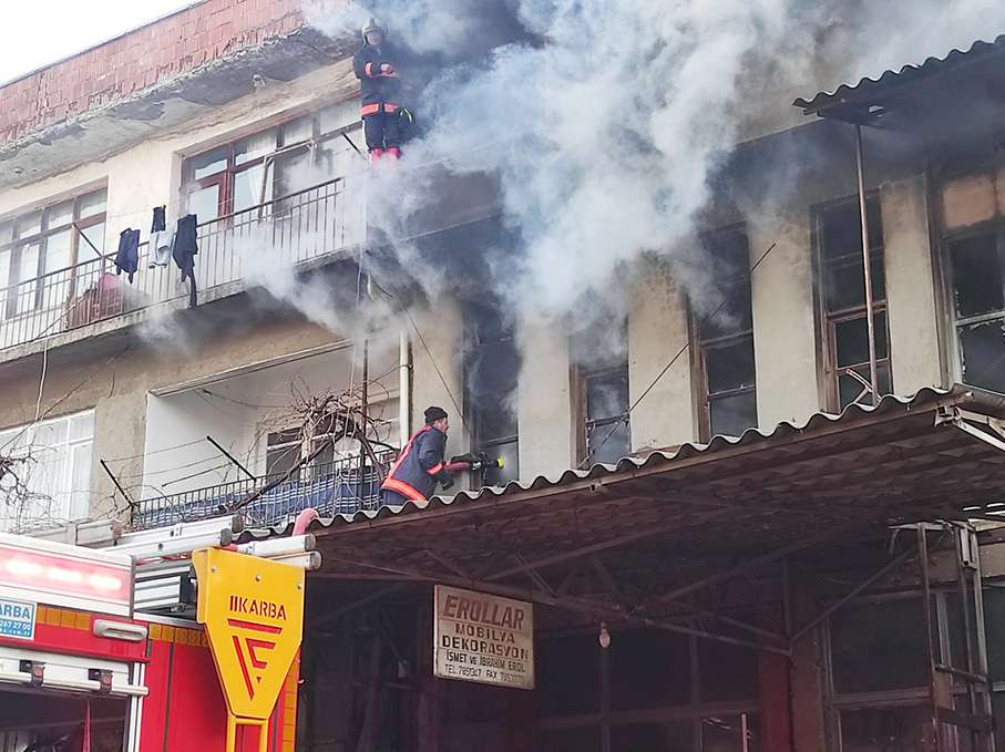Yangının çıktığı iş yerinin yanındaki evde yaşayan yaşlı bir kadın sağlık ekiplerince evden çıkartıldı.