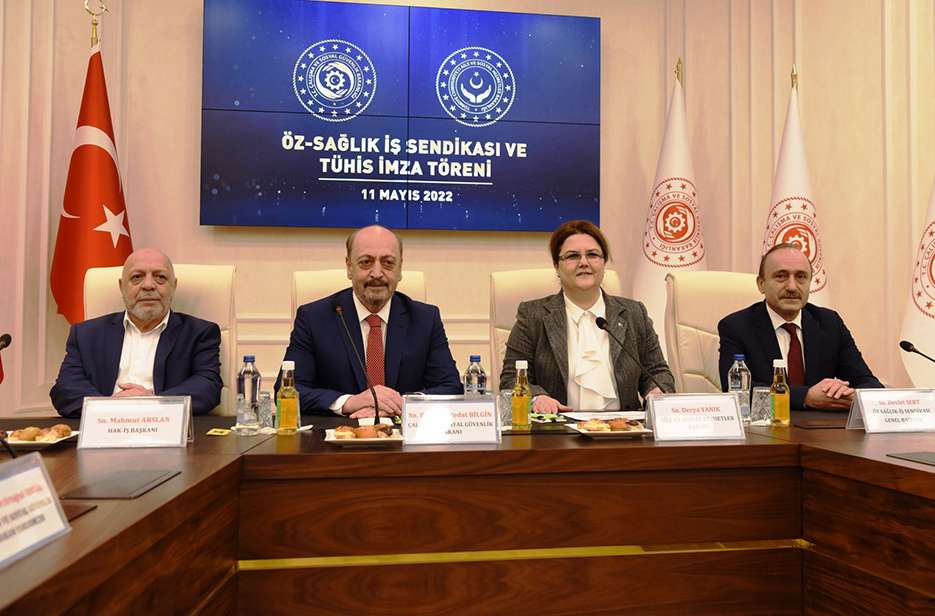ANKHABER HAK-İŞ’e bağlı Öz Sağlık-İş Sendikası ile TÜHİS arasında 26 bin Sosyal hizmet işçisinin heyecanla beklediği toplu iş sözleşmesi imzalandı. İmza törenine Öz Sağlık-İş Genel Başkanı Devlet Sert’in yanı sıra, Aile ve Sosyal Hizmetler Bakanı Derya Yanık, Çalışma ve Sosyal Güvenlik Bakanı Vedat Bilgin, HAK-İŞ Konfederasyonu Genel Başkanı Mahmut Arslan, Genel Başkan Yardımcıları Adem Yavuz, Mustafa Özüpek, Remzi Karataş, Süleyman Doğan, Bakanlık yetkilileri, TÜHİS yönetici-uzmanları ile Öz Sağlık-İş’in TİS Mevzuat Uzmanları Emre Kılıç ve Ecrin Ferah katıldı. Toplu iş sözleşmesi, Aile ve Sosyal Hizmetler Bakanı Derya Yanık, Çalışma ve Sosyal Güvenlik Bakanı Vedat Bilgin, HAK-İŞ Genel Başkanı Mahmut Aslan ve Öz Sağlık-İş Sendikası Genel Başkanı Devlet Sert tarafından imzalandı. Pandemi sürecinde ağır şartlar altında görev bilinci içerisinde özverili bir şekilde 7-10-14-21 gün ve 24 saat dezavantajlı gruplara, yaşlı, engelli ve çocuklara hizmet veren sosyal hizmet işçisi için, sorumluluk tazminatı ve yol ücreti maddeleri olmak üzere benzeri birçok madde işçi lehine düzenlenmiş, bakım elemanları için %7 iş pirimi ve %2 gece zammı, tayin, becayiş ve refakat izni hükümleri ilk defa sözleşmeye eklenmiş oldu. Söz konusu sözleşme ile işçiler haklarına kavuşurken, geleceğin temelleri de atılmış oldu. DEVLET SERT: “Bugün tarihi bir süreci yaşıyoruz” TÜHİS Genel Merkezi’nde imza töreni düzenlen imza töreninde katılımcılara yönelik bir konuşma gerçekleştiren Öz Sağlık-İş Sendikası Genel Başkanı Devlet Sert şunları söyledi: “Aile ve Sosyal Hizmetler Bakanımız ile yaptığımız görüşmelerde kendisi çalışanların her zaman yanında olduklarını ifade etmiş ve olumlu yaklaşımlar sergilemiştir. Çalışma ve Sosyal Güvenlik Bakanımız ile görüşmelerimizde de Sayın Bakanımızın emeğe bakış açısını bildiklerinden dolayı kamuoyunda büyük beklenti oluşmuştur. Sayın Bakanlarımıza bu olumlu tavırlarından dolayı teşekkür ediyorum. Sayın HAK-İŞ Genel Başkanımıza, TUHİS yönetimine, her zaman yanımızda olup destek verdikleri için ayrıca sendikamız yönetim kurulu ve uzmanlarımıza başarılı çalışmalarından dolayı teşekkür ediyorum. Sosyal diyalog çerçevesi içerisinde işçi-işveren arasında sosyal diyalog mekanizmasını işleterek yeni haklar elde edildi ve önemli bir adım atıldı. Bu nedenle emeği geçenlere tekrar teşekkür ediyor, toplu sözleşmemizin çalışma hayatımıza, sendikamıza ve işverenlerimize hayırlar getirmesini temenni ediyorum” MAHMUT ARSLAN: “Bu toplu iş sözleşmesine imza atmak benim için onurdur” Katılımcılara yönelik bir konuşma gerçekleştiren HAK-İŞ Konfederasyonu Genel Başkanı Mahmut Arslan, sürecin başarılı bir şekilde tamamlanmasından duyduğu memnuniyeti dile getirirken, “ Bu önemli başarının mimarlarını huzurlarınızda bir kez daha kutlamak istiyor ve teşekkür ediyorum” dedi. Arslan sözlerine şöyle devam etti: “Ülkemizin ve dünyanın yaşadığı zorlu bir dönem içerisinde gerçekten hepimiz için zor olan bir süreci başarılı bir şekilde tamamlamış olmak, sosyal diyalog mekanizmalarının bütününü kullanarak çalışanların haklarını azami ölçüde koruyan, aynı zamanda hizmetlerinde kalitesini, verimliliğini sağlayacak bir modeli hayata geçirmiş olmak gerçekten çok önemli. Bu önemli başarının iki mimarını huzurlarınızda bir kez daha kutlamak ve teşekkür etmek istiyorum. Aile ve Sosyal Hizmetler Bakanının bu konudaki duruşu, emeğin emekçinin hakları konusundaki hassasiyetini, çalışanlarına gösterdiği yakın ilgi ve destek için gerçekten teşekkürü hak ediyor. Çalışma ve Sosyal Güvenlik Bakanı Vedat Bilgin zaten aramızdan birisi. Bir teknisyen bakan olarak da bizim işimizi kolaylaştıran bir süreci yaşadık. DERYA YANIK: “Hizmet ettiğimiz gruplar bize emanet edilen gruplar” İmza töreninde açıklamalarda bulunan Aile ve Sosyal Hizmetler Bakanı Derya Yanık, Bakanlık olarak bazı dezavantajlı gruplara da hizmet sunduklarını belirterek “Aile ve Sosyal Hizmetler Bakanlığı şükürler olsun son 20 yılda dünya klasmanında birinci sınıf sosyal hizmetler üreten, sosyal hizmet faaliyeti veren bir hürriyete kavuştu. Bununla ne kadar övünsek azdır. Bu çalışmaları yürüten bu faaliyeti hayata geçiren arkadaşlarımız bizim mesai arkadaşlarımız. Biz Aile ve Sosyal Hizmetler Bakanlığı olarak 85 milyonun tamamına hizmet üreten bir bakanlığız. Bu anlamda çok genel ve büyük bir çatı faaliyet ifa ediyoruz ve 85 milyon Türkiye Cumhuriyeti vatandaşının en dezavantajlı gruplarına hizmet üretiyoruz. Dolayısıyla bu hizmeti götürürken çalışma arkadaşlarımızın hem o hizmetin niteliğine teknik olarak vakıf olması ama aynı zamanda insani duyarlılık noktasında da yapılan işin manevi boyutunun, insan boyutunun da en az teknik kısmı kadar farkında olması gerekiyor. Hizmet ettiğimiz gruplar bize emanet edilen gruplar. Hizmetlerimizin kalitesini arttırarak devam ettirmek. Kuşkusuz bu özveriyi beklerken arkadaşlarımızın özlük haklarını iyileştirmemiz gerektiğinin her zaman farkında olduk ve bunun için hem Bakanlık olarak hem hükümetiz olarak imkanları olabildiği kadar zorladık” ifadelerini kullandı. VEDAT BİLGİN: "Toplu iş sözleşmeleri bir ülkede demokrasinin göstergesidir" Toplu iş sözleşmesinin uzlaşmayla sonuçlanmasından duyduğu memnuniyeti dile getiren Çalışma ve Sosyal Güvenlik Bakanı Vedat Bilgin, “Toplu sözleşmeler bir ülkede demokrasinin göstergesidir. Sendikal mücadele, grevler, sosyal taraflar arasındaki mücadeleler de demokrasinin göstergesidir. Bunların uzlaşmaya dönüşmesi, uzlaşma ile neticelenmesi ayn