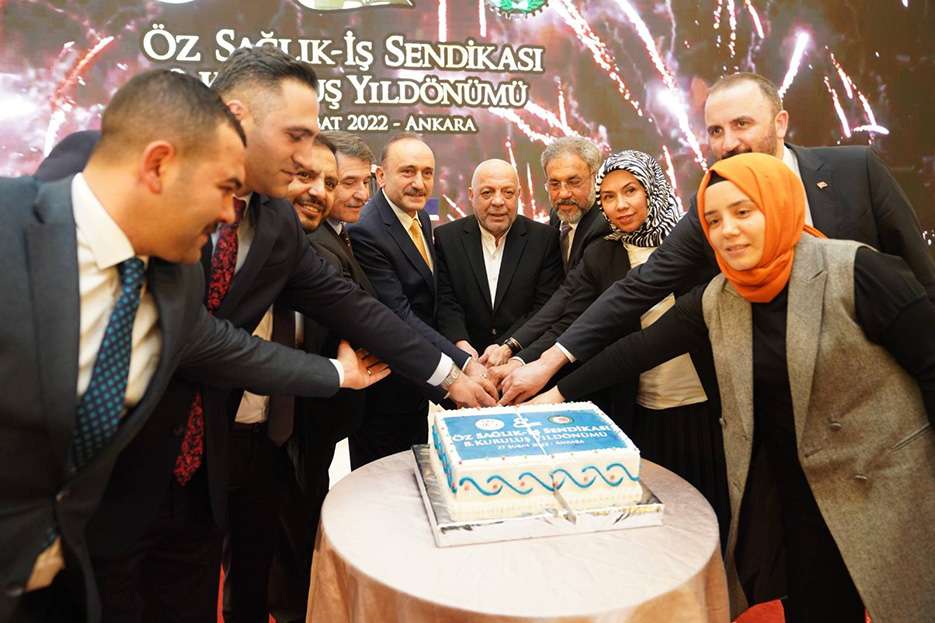 Öz Sağlık-İş Sendikasının 8. Kuruluş yıldönümü ve Pandemi Şehitlerini Anma Gecesi’ne katılan HAK-İŞ Konfederasyonu Genel Başkanı Mahmut Arslan, yaptığı konuşmada, Öz Sağlık İş Sendikası’nın 8 yıl gibi kısa bir zamanda ülke genelinde teşkilatlanma çalışmalarını tamamlamış olmasının büyük bir başarı olduğunu, üye sayısı ile işkolunda Türkiye’de lider sendika konumuna yükseldiğini söyledi.