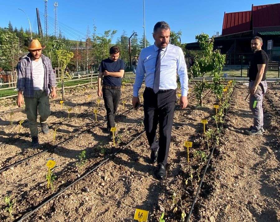Endemik Vadi Ata Bahçesini gezen Başkan Ertuğrul Çetin, yeşil biber, kırmızı biber, kavun, kırmızı ve yeşil dolma biber, acı biber, soğan, domates, mısır, ayva, karpuz, patlıcan vb. birçok sebzeninekimini yaptı.