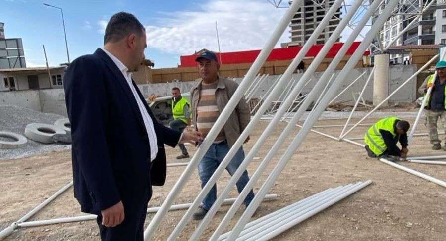 Yapım çalışmalarının büyük bir hızla devam ettiği Fatih Mahallesi Emek Caddesi üzerindeki inşaat alanında, incelemelerde bulunan Başkan Ertuğrul Çetin, gelinen son nokta hakkında bilgi aldı.