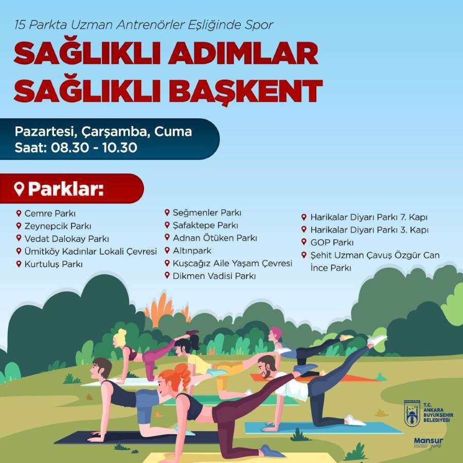 ‘Sağlıklı Adımlar, Sağlıklı Başkent’ sloganıyla gerçekleştirilen ücretsiz spor etkinliğinin düzenleneceği parklar ise şöyle: