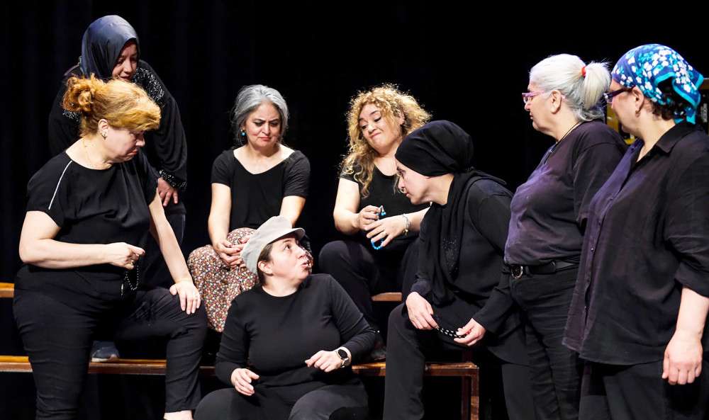 Altındağlı kadınlardan oluşan "Altındağ Belediyesi Tiyatro Topluluğu" üyeleri, gösterdikleri performansla alkış alıyor...