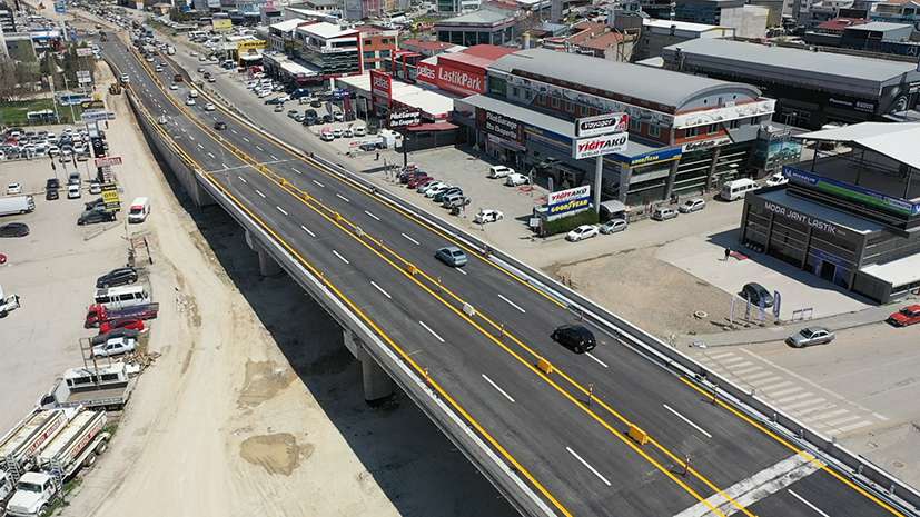 Hem geçişlerin hem de anayol üzerinden sağa ve sola dönüşlerin daha güvenli, kontrollü sağlanacağı kavşağın üstü iki gidiş iki geliş olacak ve sanayi dönüşlerinin yapılacağı yan yollar iki şerit olarak hizmet verecek.