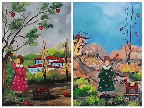 Taylan'ın sergide; kadın, nar ve kapılar temalı cıvıl cıvıl renkleriyle 45 çalışması yer aldı.
