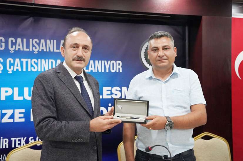 Toplu sözleşme imza törenine katılan Ege İş Sağlığı ve Güvenliği Federasyonu Başkanı Mahmut Çamlı da yaptığı konuşmada, uzun bir süredir iş sağlığı ve g güvenliği çalışanlarının hangi sahada hangi platformda örgütlenebilecekleri yönünde istişarelerde bulunduklarını belirterek, “Önce insan diyerek çıktığımız bu yolculukta insanı yaşat ki devlet yaşasın dedik ve nihayet iş sağlığı ve güvenliği çalışanları adına doğru bir karar verdiğimiz düşüncesiyle bugün buradayız. Bizleri ve bizlere destek olanları Allah utandırmasın” dedi.