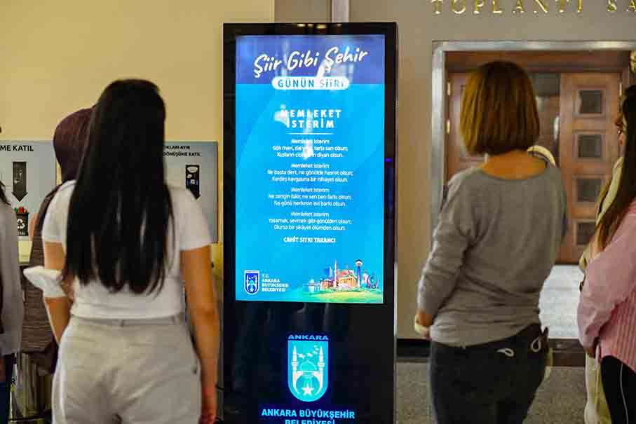 Basın Yayın ve Halkla İlişkiler Daire Başkanlığı, ABB hizmet binasının girişine personelin her sabah mesaiye başlamadan önce okuması için edebi şiirlerin yer aldığı bir ekran yerleştirdi.