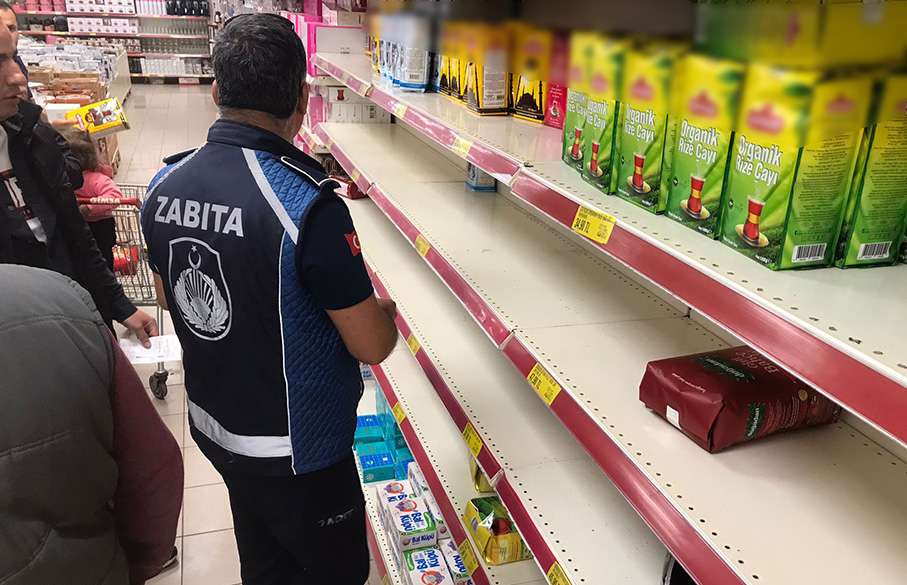 Marketlerde çay stokçuluğuna karşı market raflarında ve depolarda denetim yapan Zabıta Ekipleri tek tek incelemelerde bulundu. Stokçuluk yapan marketleri tespit ederek gerekli işlemler yapıldı.
