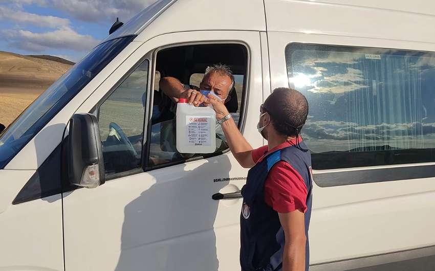 Ekipler okul servisleri için de ayrı bir çalışma yürüttü. 400 adet dezenfektan 5 litrelik bidonlarda Servisçiler Odasına kayıtlı servislere dağıtıldı. Ekipler belirlenen 4 noktada servis şoförlerine dezenfektan dolu bidonları ulaşırdı. Sincan Belediye Başkanı Murat Ercan da dağıtıma katılarak ekiplere destek verdi.
