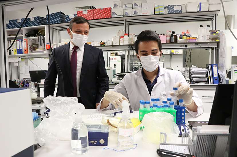 Aşı Araştırma ve Geliştirme Uygulama ve Araştırma Merkezinde soruları yanıtlayan Rektör Çalış, salgının ortaya çıktığı ilk günden itibaren ekiplerinin büyük bir gayretle çalışmaya devam ettiklerini söyledi.