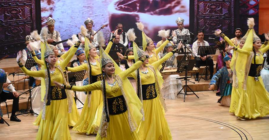 Milli enstrüman ve geleneksel kıyafetleriyle sahneye çıkan sanatçı ve solistler, ülkelerine özgü dansları sergiledi, türküleri icra etti.