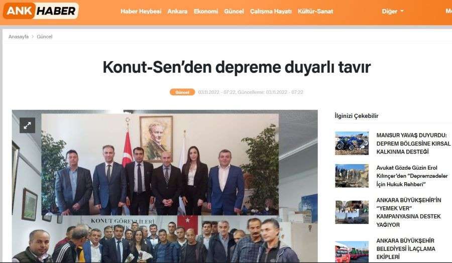 Bu arada KONUT-SEN Genel Başkanı Uğur Gözel’in çok önemsediği ve Ankara Büyükşehir Belediyesi ve İzmir Büyükşehir Belediyesi ile yürüttüğü, aparman görevlilerinin deprem eğitimiyle ilgili faaliyetlerin ne kadar hayati öneme sahip olduğu yaşanan son felaket ile bir kez daha anlaşıldı.