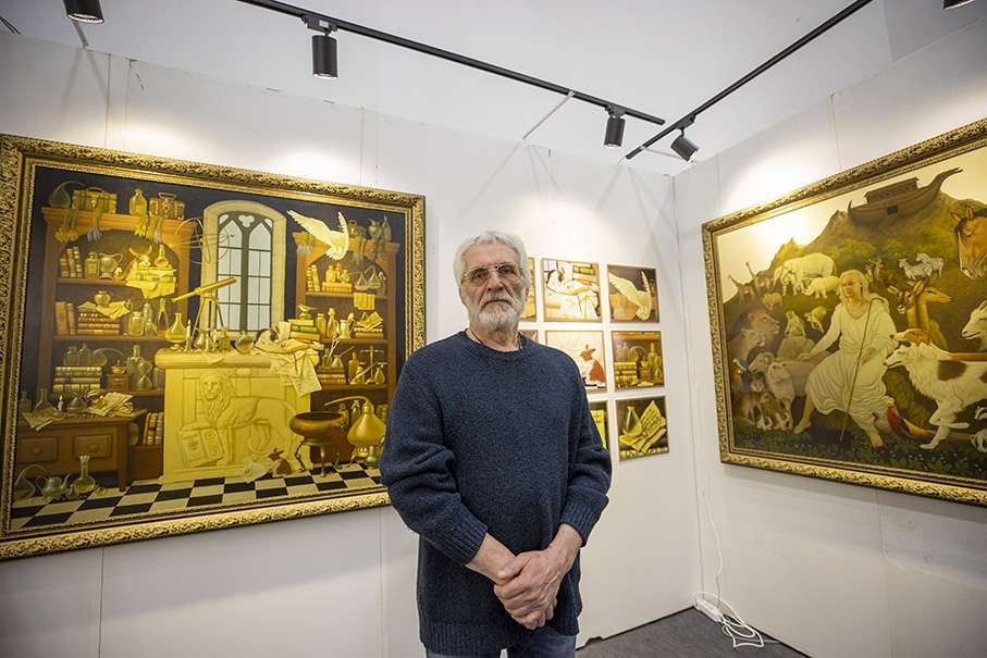 Resimleri, fuardaki Bilim Ağacı Vakfının standında sergilenen Melnykov, eserlerinin önüne de Ukrayna bayrağını yerleştirdi.