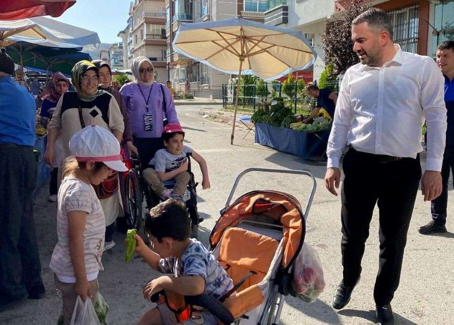 Turgut Reis Sokakta hizmet vermeye başlayan Pazar yerindeki esnafın açtığı tezgâhları tek tek dolaşan Başkan Ertuğrul Çetin, Pazar alışverişi yapmak için gelen vatandaşlarla da sohbet etti.