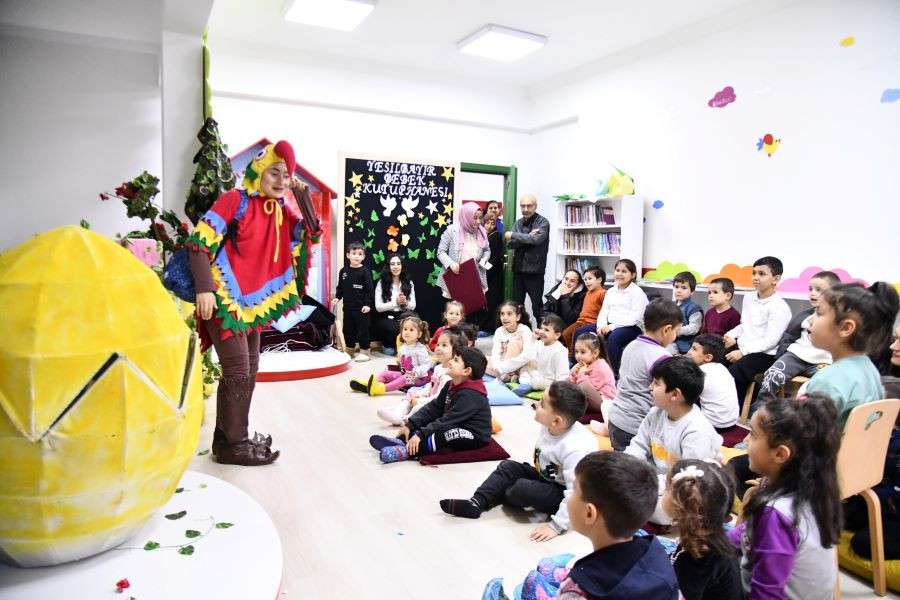 Mamak Belediyesi uyanık kütüphanelerinin yanısıra bebek ve çocuk kütüphaneleriyle de adından sıkça söz ettiriyor. Yeşilbayır ve Akdere Bebek ve Çocuk Kütüphanelerinin ardından son olarak hizmete giren Neşet Ertaş Bebek ve Çocuk Kütüphanesi ile birlikte ilçedeki bebek ve çocuk kütüphanesi sayısı 3’e yükseldi. Mamak Belediyesi bebek ve çocuk kütüphaneleri, miniklere kitap okuma alışkanlığı ve kütüphaneyi sevdirmenin dışında birçok alanda hizmet veriyor. Kitap dostu minikler yetişirken aynı zamanda düzenlenen atölye ve etkinliklerle çocukların kişisel gelişimleri de destekleniyor. “Kıpırdayan Dünya” Oyununu Keyifle Seyrettiler Yeşilbayır Bebek ve Çocuk Kütüphanesi’nde Çınar Çocuk Tiyatrosu “Kıpırdayan Dünya” oyununu minikler için sahneledi. Çocuklar, oyunu keyifle seyretti. Pembe Tavşan, Geveze Kurbağa, Çalışkan Maymun, Güvercin, Baykuş ve Bilge Kaplumbağa’nın serüveni miniklerden büyük alkış aldı.