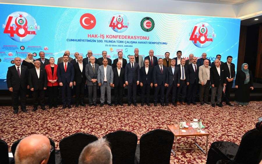 HAK-İŞ Konfederasyonu’nun 48. Kuruluş Yıldönümü ve Cumhuriyetimizin 100. Yıldönümü dolayısıyla düzenlenen “Cumhuriyetimizin 100. Yılında Türk Çalışma Hayatı Sempozyumu”, Çalışma ve Sosyal Güvenlik Bakanı Vedat Işıkhan’ın katılımıyla gerçekleştirildi. Işıkhan, Konfederasyonun 48. Kuruluş Yıldönümünü kutlayarak, HAK-İŞ’in Türkiye’de sendikacılık tarihinin sembol kuruluşlarından biri olduğunu ifade etti.