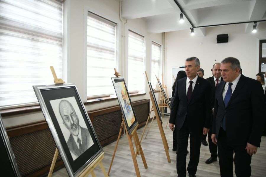 Protokol üyeleri ve katılımcılar, programın sonunda Musiki Muallim Mektebi sergi alanında açılan “ İstiklal Marşı Resim Sergisi”ni gezdi.