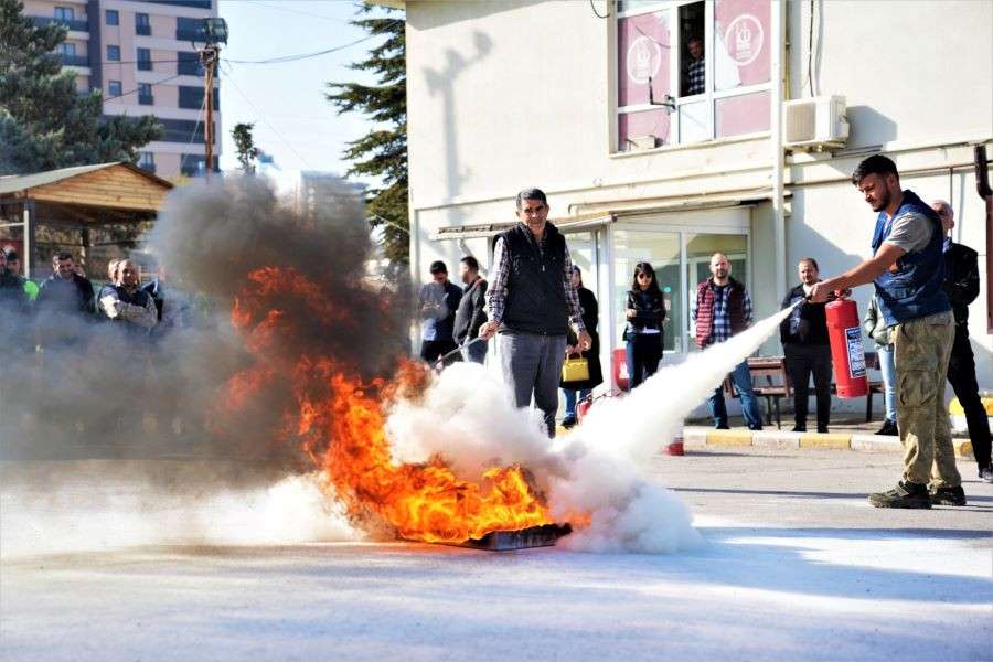 Belediyenin Sivil Savunma Birimi tarafından düzenlenen tatbikatta personele korunma, yangın söndürme, kurtarma, yangında çalışma alanının en kısa sürede tahliye edilmesi konularında bilgiler aktarıldı. Acil durumlarda itfaiyeye nasıl ulaşılacağına ve iş yerinde yer alan yangın söndürme tüplerinin nasıl kullanılacağına ilişkin uygulamalı bilgilerin de verildiği tatbikat başarıyla neticelendi.