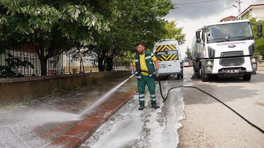 Keçiören Belediye Başkanı Turgut Altınok, ilçede etkili olan sağanak yağış sonrası yaşanan olumsuzlukları ortadan kaldırmak için Keçiören’in sokaklarını tazyikli su ile yıkadıklarını belirterek, “Keçiören Belediyesi olarak sağanak yağışların ardından her zaman üzerimize düşenden fazlasını yaptık. Ekiplerimiz temizlik çalışmalarını sokak sokak sürdürüyor.” dedi. ​