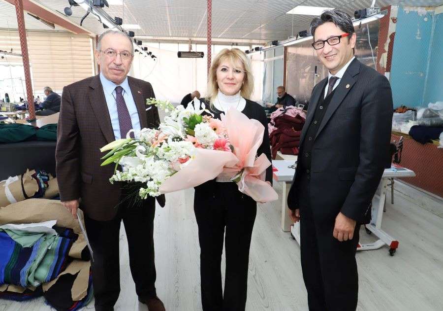 Ankara Terziler ve Konfeksiyoncular Esnaf ve Sanatkarlar Odası Başkanı Muhittin Köksal, beraberinde YKÜ Kenan Ülger ile birlikte KOSGEB desteği ile kadın konfeksiyonu üzerine kendi işini kuran Nevruz Öztürk'ü atölyesinde ziyaret ederek, 8 Mart Dünya Kadınlar Günü'nü kutladı.