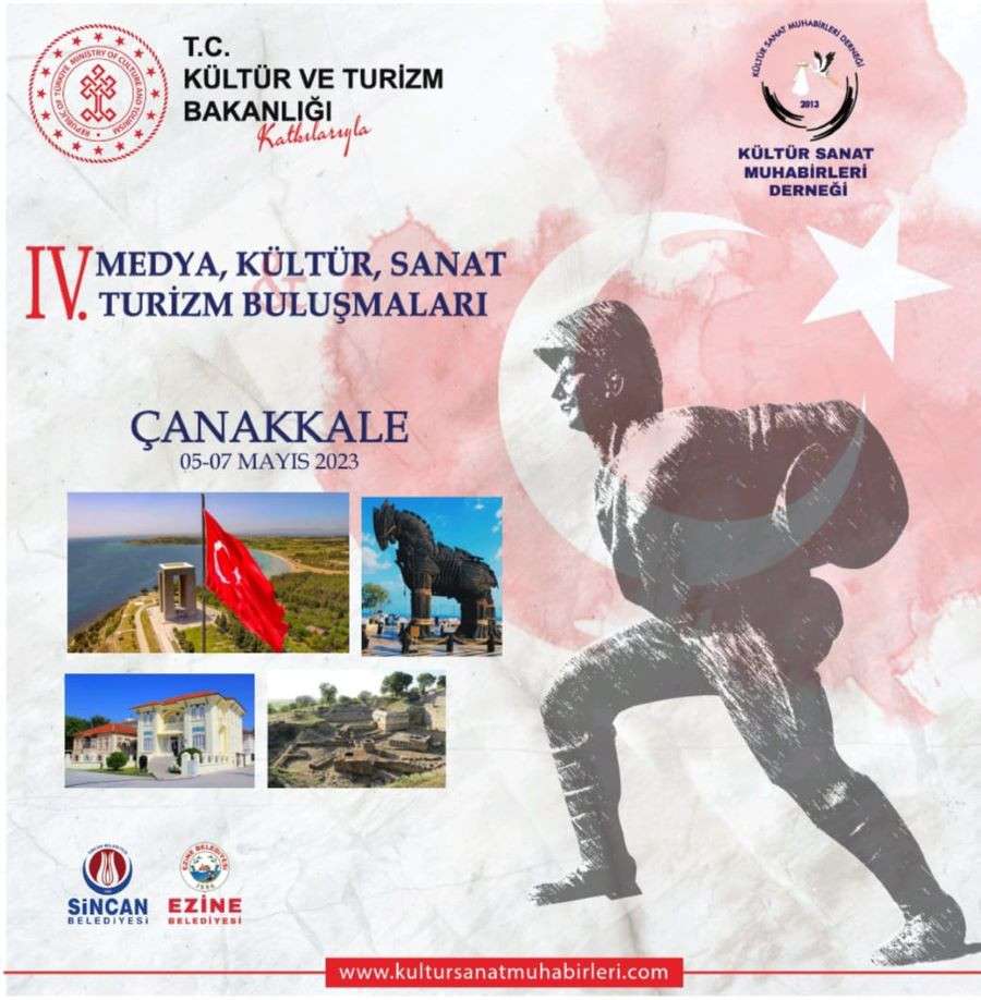 Kültür ve Turizm Bakanlığının katkılarıyla Kültür Sanat Muhabirleri Derneği tarafından bu yıl dördüncüsü düzenlenen “Medya, Kültür Sanat ve Turizm Buluşmaları” projesinin son etkinliği 5-6-7 Mayıs tarihlerinde Çanakkale’de gerçekleştirilecek.