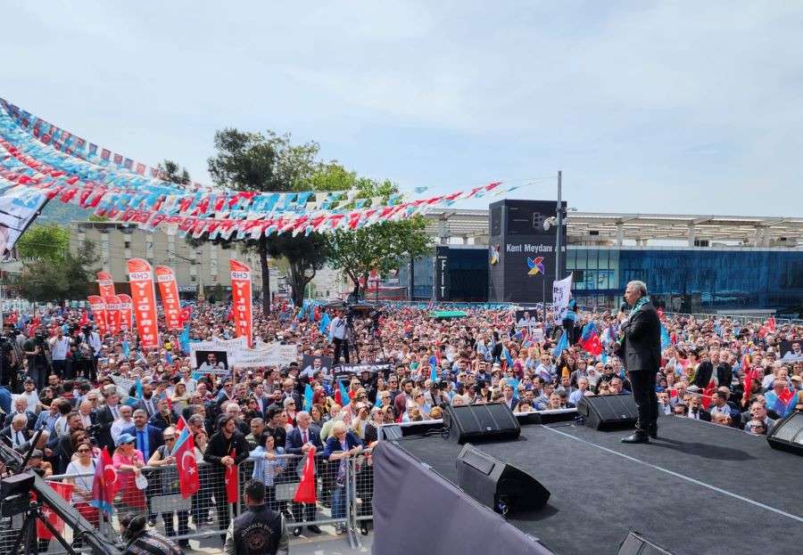 “14 Mayıs akşamı, helal oylarınızla bu seçimi kazanacağız. Sayın Kılıçdaroğlu, 13. Cumhurbaşkanımız olacak. Erdoğan ve arkadaşlarını emekli edeceğiz, Kılıçdaroğlu'nu da makamına oturtacağız. Ben de başbakan olacağım. Helal oylarınızla partimizi 1. parti çıkaracaksınız. Sinan Ateş'in katilleri hesap vermezse namerdim, şerefsizim. Muhsin Başkanın da kanı yerde kaldı. O suikast ne oldubitti. Kimse ne olduğunu anlayamadı. Muhsin Başkan içimizde bir yara, Sinan da çok taze bir yara. Türkiye mübareklerin elinde sanki savaşa gidiyor. Seçime gidiyoruz seçime. Bursa'ya gençlerimiz için neler planladığımızı, kovulan doktorlar için, öğretmenler için ne yapacağımızı, tarımı, sanayiyi, Suriyelileri söylememiz gerekirken, Allah Allah nidalarıyla savaşa gidiyoruz. Arkadaş kafayı mı yedin sen bizim elimizde silah mı var darbe yapacağız. Bu asil millet senin beceriksizliğin yüzünden 15 Temmuz’da ortaya çıkan o darbe kalkışmasının karşılığı olarak bu devleti, köprüden ve sokaktan toplayıp getirdi. Şehit olma uğruna, gazi olma uğruna bedelini ödedi. Bir de onlara darbeci mi diyorsun? Senin canını onlar kurtardı be. Bir arkadaş daha var, erkeklerin evlenmesine takmış. Sonra erkekler ve hayvanlar dedi. Şimdi asayişten sorumlu olması gereken muhteremin kafayı taktığı yerler. Gerçekten sıyrık durumdalar. Bir tanesi yaşını başını almış bir arkadaş, daha istiklal marşını kâğıttan okuyamadı. O da bizi işgalci yapmış. Kendisi neymiş? Yahu onlar da İstiklal mücadelesi veren yiğitlermiş. Böyle bir şey olur mu ya? Biz seçime gidiyoruz, seçime. Mesela sen tarım için, gençler, atanamamış öğretmenler için ne düşünüyorsun? Biz ne düşünüyoruz biliyor musunuz? Bir tane jeliboncu var. Niye bu adam dinozora takık? ANKAPARK diye bir park yapmış adam her yer dinozor. Harcadığı para ne biliyor musunuz? 16 milyar lira. Üç kişinin cebine girmiş. 16 milyar lira ile Ankara’da Bursa’da Türkiye’de neler yapılabilirdi? Benim sağ elimde Gaffar Okan'ın katilleri yok, senin sağ elinde Recep Bey, Gaffar Okan'ın katilleri var. Sol elinde PKK var.”