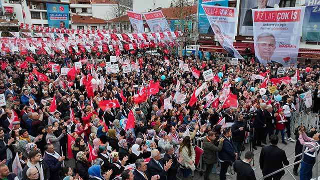 Ankara’da artık seçimlerde farkın ne kadar olacağının konuşulduğunu söyleyen Yavaş, elinden tutacak ilçe belediye başkanlarının seçilmesinin önemine işaret etti. Yavaş, “Değişimden korkmayın. Ankara eğer beni seçmeseydi, yani eski yönetimi değiştirmeseydi, bugün bu yaptığımız sosyal destekler, bugün yaptığımız kırsal desteklerin hiçbirisi olmayacaktı. O zaman Haymana'yı da değiştireceksiniz, deneyeceksiniz. El ele çalışacağız, eğer olmazsa Levent Başkanı da değiştireceksiniz. Demokrasi böyle bir şey. Kim daha iyi hizmet ediyorsa onu seçeceksiniz” diye konuştu.