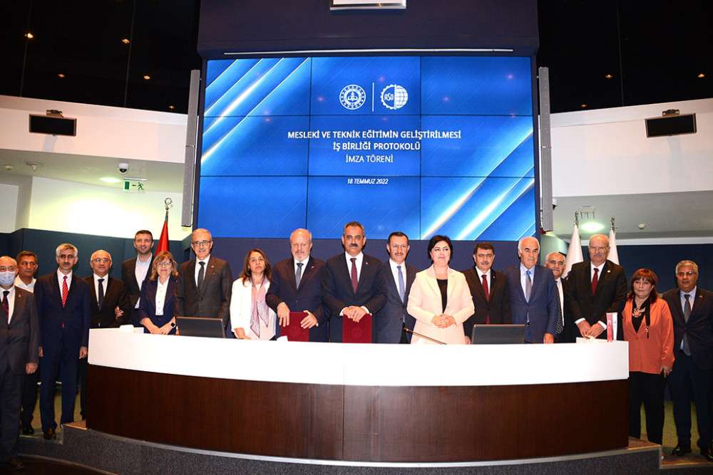 Ankara Sanayi Odası ile Milli Eğitim Bakanlığı arasında mesleki ve teknik eğitimde istihdam ve üretim ilişkisini güçlendirmeyi amaçlayan "Mesleki ve Teknik Eğitimin Geliştirilmesi İş Birliği Protokolü" imza töreni ASO'da gerçekleştirildi.