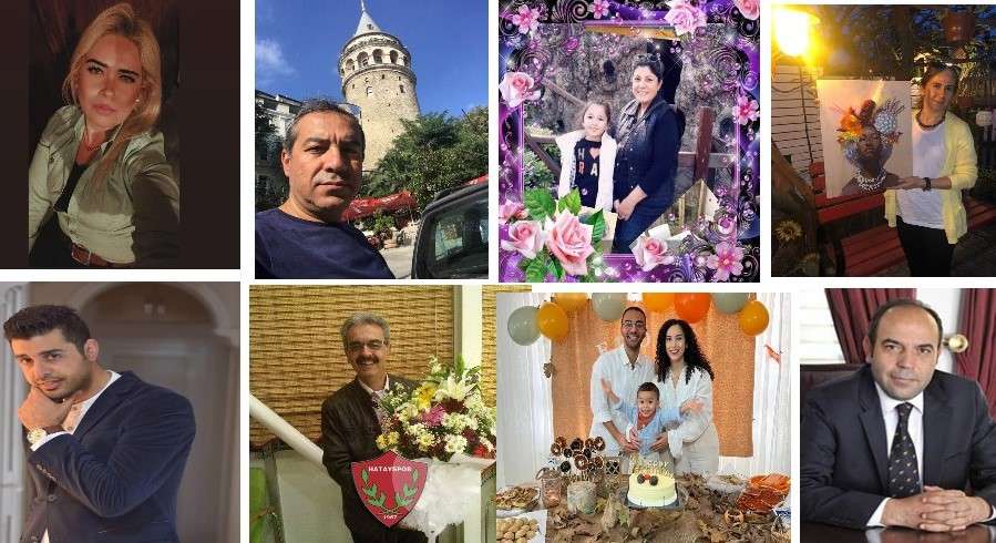Antakya Medeniyetler Korosu’nun Deprem Kurbanları ve kurtulon Koro Şefi: (fotoğrafların sırasına göre, soldan sağa) Gizem Dönmez, Ahmet Fehmi Ayaz, Fatma Çevik, Pınar Aksoy, Hakan Samsunlu, Mehmet Özdemir, Müge Mimaroğlu... Son fotoğraf ise depremde kurtulan Şef Yılmaz Özfırat'a ait… (Fotoğrafları gönderen: Bedirhan Gök)