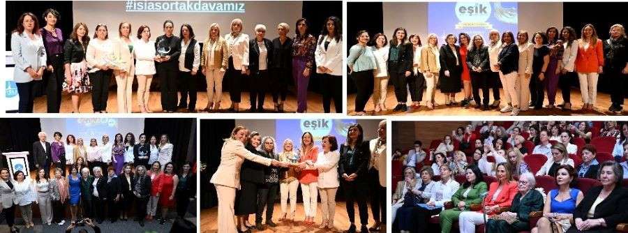 Önder Kadın Onur Ödülü, İKKB Koordinatörü Nazan Moroğlu tarafından Eşik Platformu Kadınları’na takdim edildi. Sahneye hep beraber çıkan Eşik Kadınları adına söz alan Eşik gönüllüsü Hülya Gülbahar, “Birleşe birleşe kazanacağız, kadın mücadelesi, kadın dayanışması diyoruz” dedi.