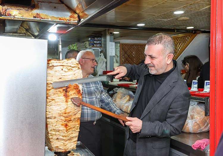 Esnaf ziyaretlerinde de aktif olan Başkan Ercan, bazen tezgahın arkasına geçerek esnafın yerine geçiyor. Bu sefer dönerci ocağının başında döner kesen Başkan Ercan, "Yarım ekmek hazırlıyorum, iyi pişmiş yerinden," diyerek esprili bir şekilde vatandaşları karşılıyor ve onları gülümsetiyor.
