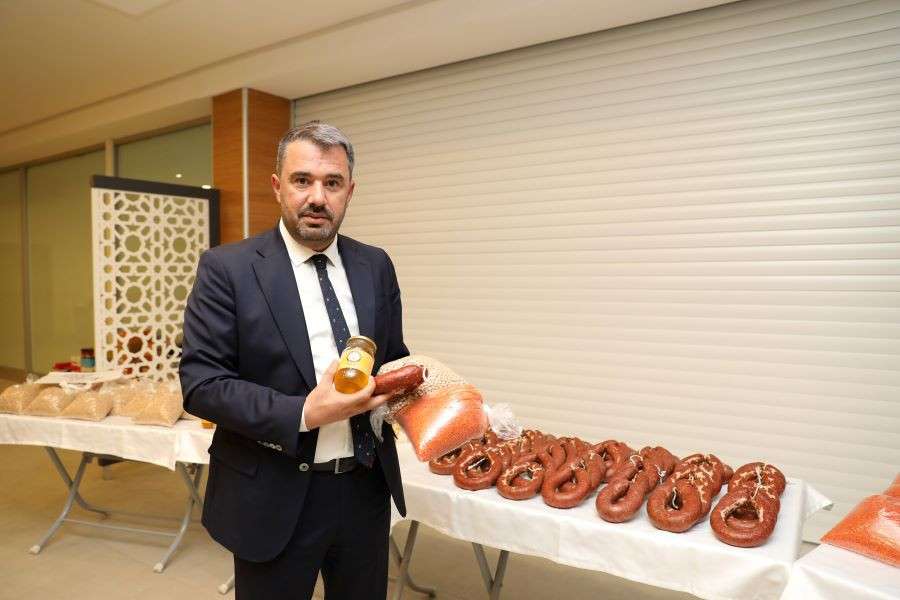 Bal, sucuk, nohut ve mercimeğin dağıtılmak üzere hazırlandığı Tebessüm Çarşısına giden Başkan Ertuğrul Çetin, belediye ekiplerince yapılan hazırlıkları yakından takip etti.