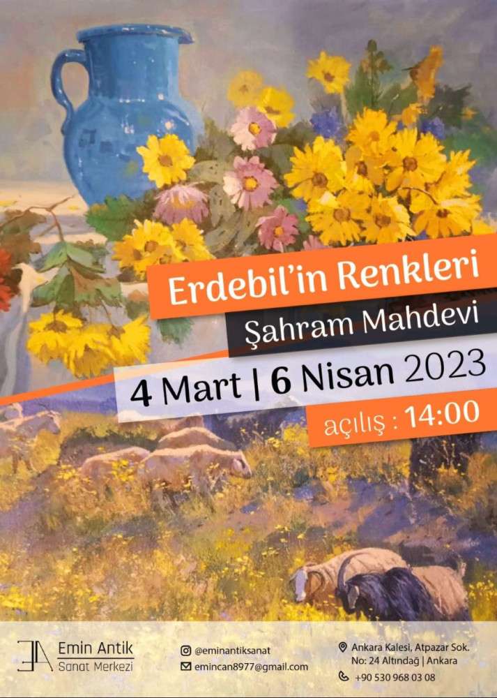 “İran Erdebil Türklerinden Ressam Şahram Mahdavi'nin "Erdebil’in Renkleri" Resim Sergisi 4 Mart 2023 Cumartesi saat 14.00 de açılışında siz değerli sanatsever dostlarımızın katılımından onur duyarız...